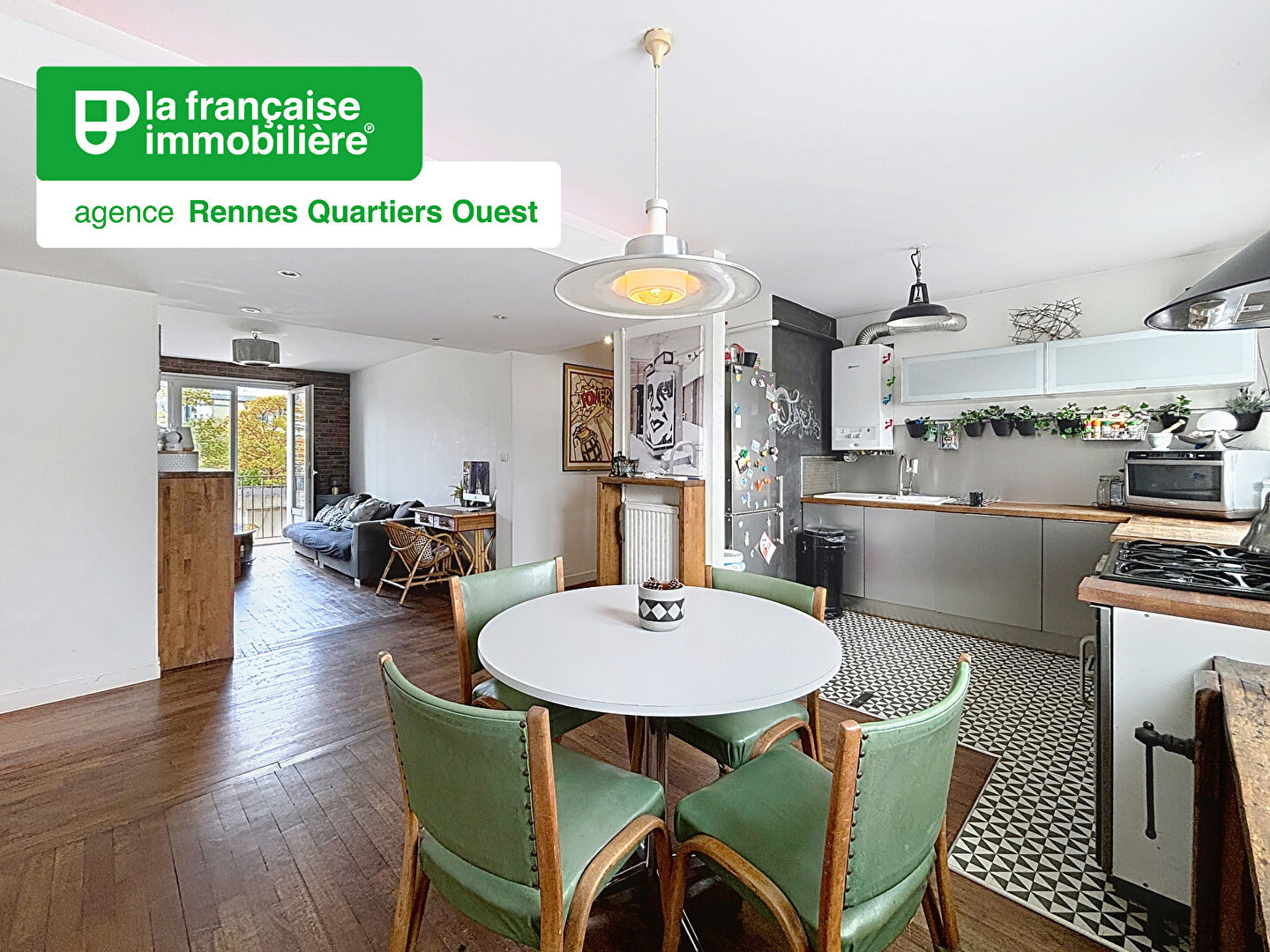 Agence La Française Immobilière QUARTIERS OUEST ! Charme des années 60 pour ce Type 4 situé à proximité du métro Mabilais, dans une copropriété avec ascenseur comprenant une entrée, une cuisine aménagée et équipée ouverte sur la salle à manger et le salon, le tout 35m², deux balconnets, un dégagement, deux chambres, une salle de bains, WC ; une cave avec électricité en sous-sol.